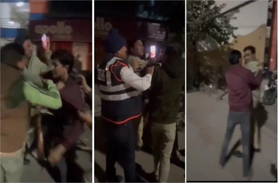 चैकिंग कर रही ट्रैफिक पुलिस के साथ युवकों ने की हाथापाई