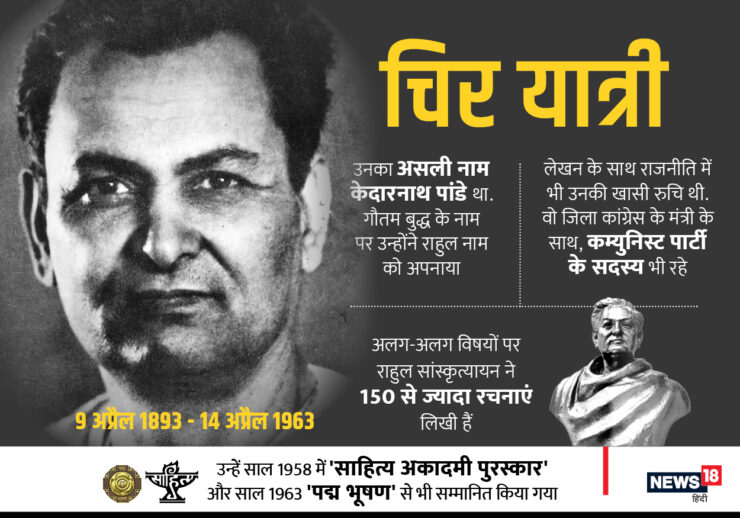 आधुनिक भारत के महानतम विद्वानों, लेखकों और साहित्यकारों में सबसे अग्रणी नाम राहुल सांकृत्यायन का है। उनका जन्म 9 अप्रैल 1893 को उत्तर प्रदेश के आजमगढ़ जिले के गांव पंदहा में हुआ था। उनके पिता रूढ़िवादी ब्राह्मण परिवार से संबंधित थे। उनका बचपन का नाम केदारनाथ पांडे था। श्रीलंका में बौद्ध धर्म और महात्मा बुध्द पर अध्ययन करने के कारण उन्हें “राहुल” कहा गया। राहुल सांकृत्यायन अपने पर्यटन से, अपने प्रयत्नों से और अपनी मेहनत से एक महान रचनाकार बनें। वे तीस से भी अधिक भाषाएं जानते थे। उन्होंने दुनिया के कई देशों जैसे इंग्लैंड, तिब्बत, श्रीलंका, ईरान, चीन, सोवियत यूनियन, अफ्रीका आदि देशों की यात्राएं की और अपने घुमक्कड़ी जीवन में अनेक महत्वपूर्ण और बेहतरीन रचनाओं को जन्म दिया। वे ज्ञान, विज्ञान और तर्क के भंडार थे, इसलिए उन्हें “महापंडित” की उपाधि दी गई।