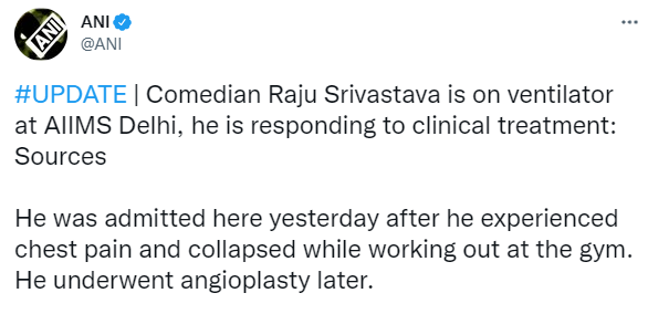 राजू के करीबी मकबूल निसार ने बताया कि वे होटल के जिम में सुबह वर्कआउट कर रहे थे। इस दौरान ट्रेडमिल पर रनिंग करते समय उन्हें चेस्ट में पेन हुआ और वे नीचे गिर गए थे। इसके बाद उन्हें फौरन अस्पताल में भर्ती कराया गया। उन्होंने कहा कि राजू श्रीवास्तव पार्टी के कुछ बड़े नेताओं से मिलने के लिए दिल्ली पहुंचे थे। राजू ने 2014 में BJP जॉइन की थी। 31 जुलाई तक वो लगातार शोज कर रहे थे, उनके आगे कई शहरों में शोज लाइन अप हैं।