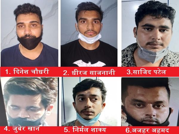 इनमें अजहर पिता (28) अफसार अहमद निवासी 78 जी अशरफ नगर खजराना, जुबैर खान (28) पिता छोटू खान निवासी स्वर्ण बाग काॅलोनी मस्जिद वाली गली विजय नगर, दिनेश (28) पिता वंशीलाल चौधरी निवासी 126 अनुराग नगर, बाॅम्बे हास्पिटल, धीरज (26) पिता तरुण साजनानी निवासी स्कीम 114 पार्ट ए, निर्मल शाक्य (25) पिता शेखर शाक्य निवासी अरबिंदो पालिया रोड, तहसील सावेर, मोहम्मद साजिद पटेल (25) पिता मोहम्मद शहजाद पटेल निवासी स्कीम 94 खजराना है। बाकी अन्य आरोपियों से पूछताछ की जा रही है।