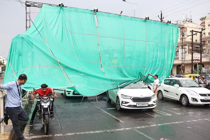नगर निगम ने गर्मी से वाहन चालकों को राहत देने के लिए शहर के कई मार्गों पर ग्रीन नेट लगवाई, लेकिन वे तेज हवाएं नहीं झेल पाई।एमआर-9 चौराहे पर लगी ग्रीन नेट गिर गई। इससे वाहन चालकों को काफी परेशानी होने लगी और चौराहे पर ट्रैफिक जाम हो गया। बाद में निगम के अमले ने नेट को हटवाया।