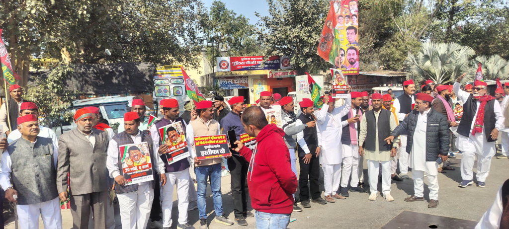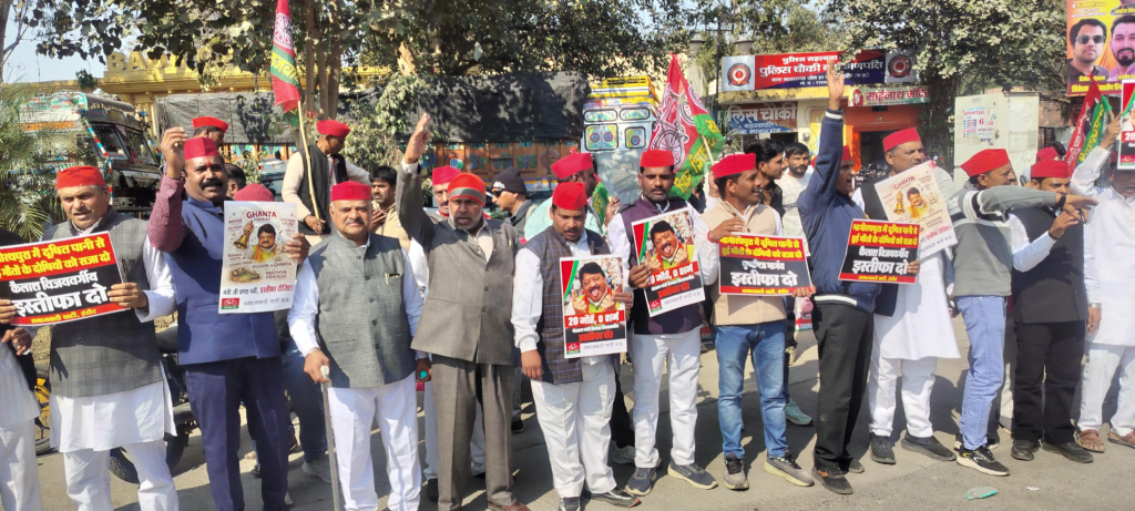टिंग लगाकर प्रदर्शनकारियों को रोक लिया। पुलिस के साथ कार्यकर्ताओं की खूब झूमा झटकी हुई। कई कार्यकर्ता गिर भी गए और उन्हें चोंटे भी आई बाद में वही सड़क पर समाजवादी पार्टी ने विरोध में धरना दिया। धरना स्थल पर ही डॉक्टर मनोज यादव, बाबूलाल पहलवान, दिनेश पांडे, रामबाबू अग्रवाल, रामस्वरूप मंत्री, राधेश्याम पवार, लीलाधर चौधरी, राजेंद्र यादव ,बटेश्वर नाथ सिंह सहीत कई वक्ताओं ने संबोधित करते हुए चेतावनी दी कि यदि कैलाश विजयवर्गीय का इस्तीफा नहीं होता है तो समाजवादी पर्टी इस आंदोलन को प्रदेश व्यापी बनाकर सरकार को बर्खास्त करने की मांग करेगी।