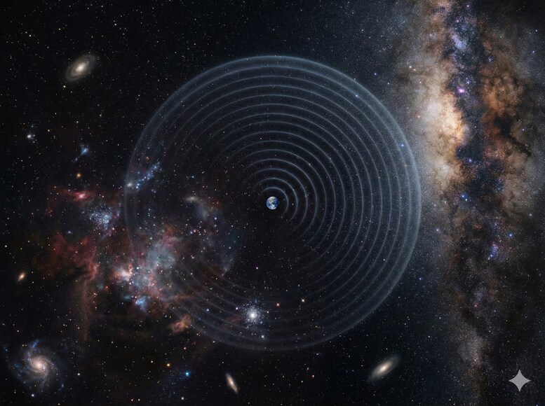 रेडियो बबल वह क्षेत्र है जहां हमारी लहरें पहुंची हैं. रेडियो लहरें रोशनी की गति से यात्रा करती हैं. हमने 119 साल पहले सिग्नल भेजना शुरू किया था. इसलिए इस बबल का रेडियस 119 प्रकाश वर्ष है. इसका मतलब यह नहीं कि सिग्नल बहुत साफ हैं. यह बबल एक पतली परत की तरह है. जैसे-जैसे लहरें फैलती हैं, वे कमजोर हो जाती हैं. वे अंतरिक्ष के बैकग्राउंड शोर में मिल जाती हैं. इस बबल का कोई ठोस किनारा नहीं है. यह बस दूरी और समय का एक बढ़ता हुआ दायरा है. यह ऊर्जा लगातार कम होती जा रही है.