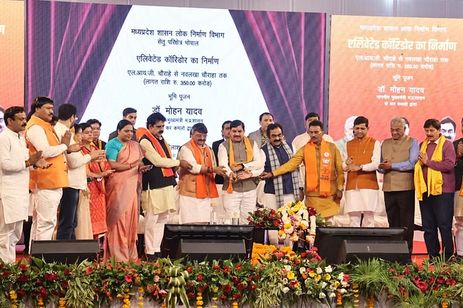 इंदौर में एलिवेटेड कॉरिडोर का भूमिपूजन करते सीएम मोहन यादव – फोटो : अमर उजाला