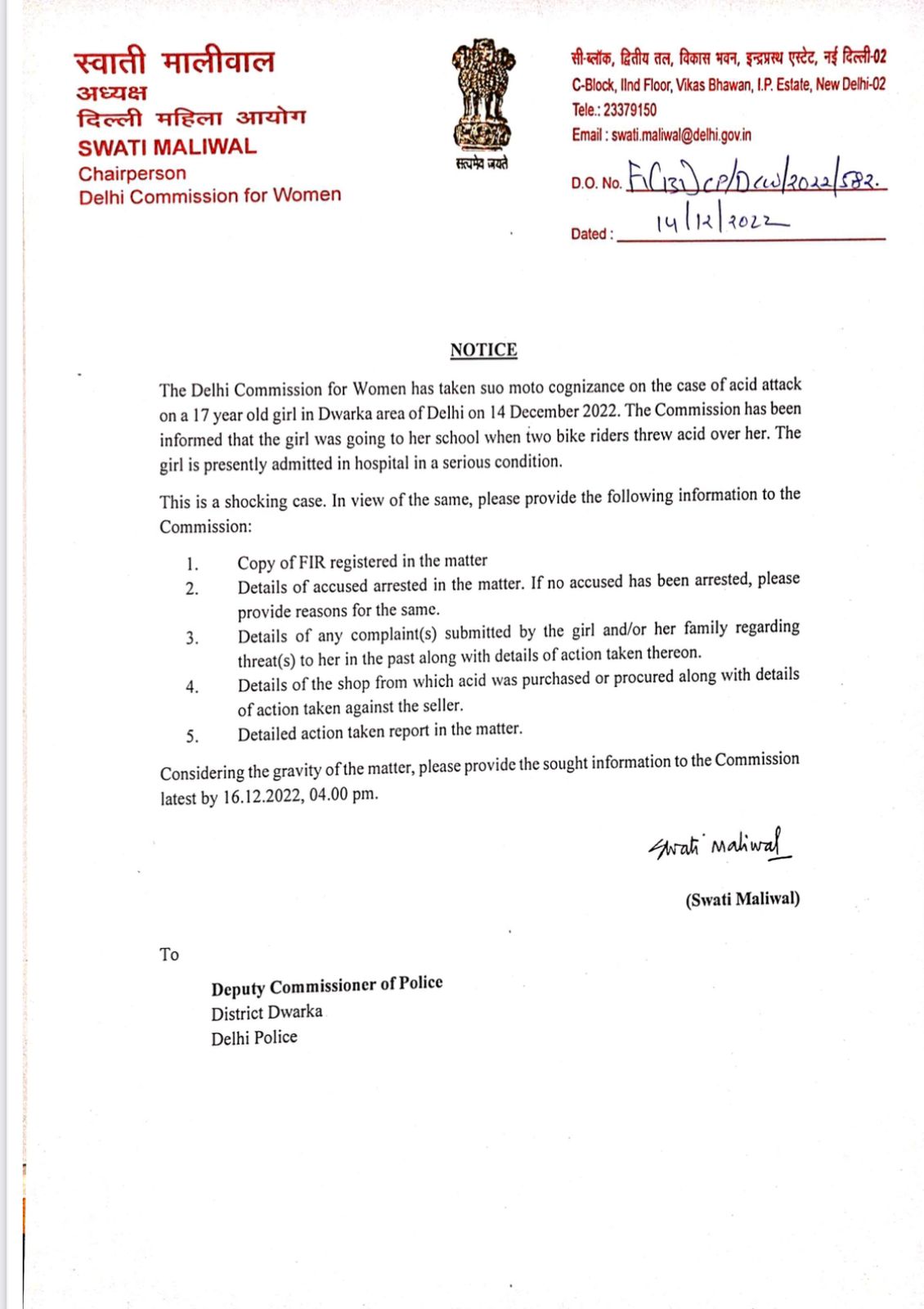 उन्होंने एक और ट्वीट में कहा- एसिड सब्जियों की तरह आसानी से मिल रहा है। सरकार इसकी खुदरा बिक्री पर रोक क्यों नहीं लगा रही। दिल्ली महिला आयोग सालों से इस पर बैन की मांग कर रहा था। सरकारें कब जागेंगीं?