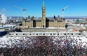 कनाडा में पचास हजार के आसपास ट्रक चालकों ने प्रधानमंत्री जस्टिन ट्रूडो का निवास शनिवार को घेर लिया। वे अपने ट्रक साथ लिए हुए है। ये ट्रक चालक अपनी मांगों को लेकर प्रदर्शन कर रहे हैं। नारे लगा रहे हैं। वाहनों के हाँर्न बजा रहे हैं।ये लंबे समय के प्रवास के इरादे से खाने −पीने का सामान लेकर राजधानी आए हैं। हालत इतनी खराब है कि राजधानी ओटावा के चारों और सत्तर मील तक जाम लगा हुआ है। शहरवासी परेशान है। ट्रक चालकों ने अपने करीब 70 किमी लंबे काफिले को ‘फ्रीडम कान्वॉइ’ नाम दिया है। ट्रक वाले कनाडा के झंडे के साथ ‘आजादी’ की मांग वाले झंडे लहरा रहे हैं। वे पीएम ट्रूडो के खिलाफ जमकर नारेबाजी कर रहे हैं। आंदोलन को हजारों अन्य प्रदर्शनकारियों का भी साथ मिल रहा है।सड़कों पर हजारों की संख्या में बड़े-बड़े ट्रकों की आवाजें लगातार सुनाई दे रही हैं । ये ड्राइवर ट्रकों के हॉर्न लगातार बजाकर सरकार का विरोध कर रहे हैं। वे संसद के पास पहुंच गए हैं।हालत इतनी खराब है कि कनाडा के प्रधानमंत्री जस्टिन ट्रूडो और उनके परिवार ने भारी विरोध प्रदर्शन की वजह से देश की राजधानी स्थित अपने आवास को छोड़ दिया है। वे किसी गुप्त स्थान पर जाकर छिप गए हैं।