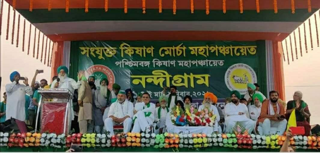 किसान आंदोलन की गूंज बंगाल के चुनाव में सुनाई देने लगी है। किसान एकता मंच ने एक अपील देश के उन राज्यों जहां फिलहाल चुनाव हो रहे हैं, के मतदाताओं से की है, कि वे देश और जनहित में भाजपा को वोट न दें। एकता मंच के नेता बंगाल के नंदीग्राम में अपनी सभा भी कर चुके हैं। पंजाब से उठा किसानों का यह आंदोलन कभी पश्चिमी विक्षोभ की तरह, बरस कर निकल जाने वाले तूफान की तरह लग रहा था, पर जब यह हुजूम 26 नवम्बर को, पानी की बौछारों और लाठी चार्ज का सामना करते हुए दिल्ली की देहरी पर आ जमा तब लगा कि यह मौसमी बारिश नही है बल्कि इस तूफान में परिवर्तन की उम्मीदे छिपी हैं। लेकिन इस जमावड़े को, उस हुजूम को, उस संकल्प को, और किसानों की उस व्यथा को न तो सरकार ने गम्भीरता से लिया और न ही मीडिया के एक अंग ने। देशभर में उत्कंठा थी, कौतूहल था, पर यह उम्मीद नहीं थी कि यह आंदोलन, जन आंदोलनों के इतिहास में एक अमिट हस्ताक्षर बनने जा रहा है। सरकार को लगा कि, वह इस जन आंदोलन को उसी प्रकार निगल जाएगी, जिस प्रकार उसने अन्य जन आंदोलनों को निगल लिया था। जैसे सीएए विरोधी आंदोलन। वही आजमायी शातिराना चालें, धार्मिक भेदभाव औऱ विरोध के हर स्वर को देशद्रोह कह कर फूट डालो, अपना मक़सद हल करो और चलते बनो, की आजमाई शैली काम मे लायी गयी और उधर मीडिया का एक हिस्सा सरकार के दुंदुभिवादक के रूप में सरकार के हर शातिराना जनविरोधी कृत्य में तो, सरकार के साथ था ही। सरकार ने बातचीत भी शुरू की और उसके सामानांतर, आईटी सेल और औऱ कुछ मीडिया घराने दुष्प्रचार भी फैलाते रहे। साथ ही दिल्ली की किलेबंदी भी की गयी । पर इन सब कुटिल चालों के बावजूद न तो किसानों का मनोबल टूटा, न उनका हौसला और न ही वे अपने धरनास्थल से एक इंच पीछे हटे। जहां एक तरफ़ सरकार, उसके साथ व्यापक जनसम्पर्क की क्षमता और शक्ति के साथ मीडिया हो, ऐसे संगठित तंत्र के मुकाबला आसान भी नहीं रहता है। पर जब संकल्प अपने हक़ के लिये हो तो, विरोध में खड़ा हर तरह का सत्ता तंत्र मात खाता ही है। अब किसान मोर्चा बंगाल में हैं। वे अपनी बातें जनता तक पहुंचा रहे हैं। पंजाब, हरियाणा, राजस्थान और पश्चिमी उत्तरप्रदेश में संगठित हो रहा यह आंदोलन अब धीरे धीरे पूरे देश मे अपनी जड़ जमाने लगा है।