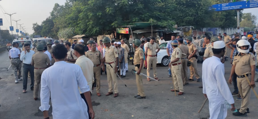 मालेगांव में बंद का आह्वान सुन्नी जमातुल उलमा, रेजा अकादमी और अन्य संगठनों ने किया था। बंद के दौरान हजारों की संख्या में लोग सड़कों पर आ गए। शहर के पूर्वी हिस्से में बंद शांतिपूर्ण ढंग से रहा। हालांकि, शाम को युवकों के एक समूह ने छत्रपति शिवाजी महाराज की प्रतिमा के पास की दुकानों पर पथराव कर दुकानें बंद करने का प्रयास किया। इसके बाद अपर पुलिस अधीक्षक चंद्रकांत खांडवी, उपाधीक्षक लता डोंडे, नगर थाना निरीक्षक धुसर समेत अन्य अधिकारी मौके पर पहुंचे।
