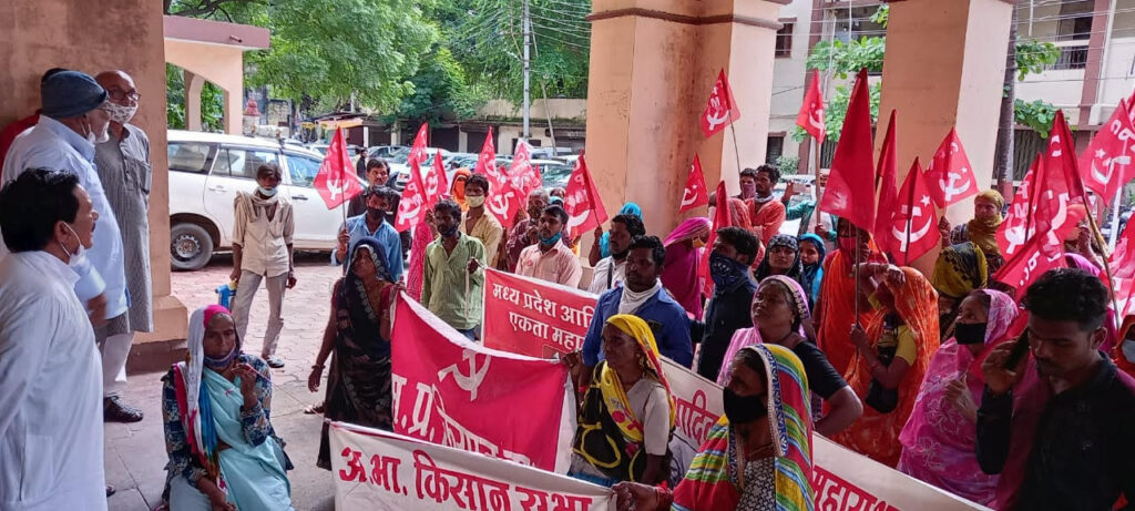 इंदौर | माकपा किसान सभा आदिवासी एकता महासभा द्वारा संयुक्त किसान मोर्चा के आह्वान पर आज गांधी हॉल से जुलूस निकालकर संभाग आयुक्त कार्यालय के समक्ष जोरदार प्रदर्शन किया गांधी हॉल मैं हुई सभा को संबोधित करते हुए माकपा के राज्य सचिव कॉमरेड जसविंदर सिंह ने कहा की वर्षों के लंबे संघर्ष और लाखों कुर्बानियों के बाद प्राप्त हुई आजादी और अधिकारों को पुनः खतरा पैदा हो गया है और उसे बचाए जाने के लिए सभी वर्ग के लोग संघर्ष के मैदान में है विगत 9 माह से देश का किसान आजादी के बाद के ऐतिहासिक आंदोलन में कृषि कानून और बिजली संशोधन बिल निरस्त कराने के लिए लड़ रहा है दूसरी ओर केंद्र सरकार देशी-विदेशी पूंजीपतियों को देसी संसाधनों बैंक बीमा रेलवे और प्राकृतिक संसाधनों को वन भूमि सरकारी भूमि कारपोरेट के हवाले करती जा रही है यह हमारे देश के कृषि आधारित ढांचे के लिए गंभीर खतरा पैदा करने का कार्य सरकार द्वारा किया जा रहा है इनके खिलाफ चलाए जा रहे संघर्षों को लगातार कुचलने की कार्रवाई सरकार द्वारा की जा रही है ताजा उदाहरण हरियाणा के करनाल जिले का है जहां पर किसान विरोधी कानूनों के खिलाफ विरोध कर रहे सैकड़ों किसानों के ऊपर लाठी चार्ज किया गया लाठीचार्ज की घोषणा एसडीएम द्वारा पुलिस को दी जा रही है जिसका वीडियो सोशल मीडिया पर दिखाया जा रहा है जिसमें कि वो खुलकर कह रहे हैं कि कोई भी किसान आंदोलन आगे नहीं बढ़ना चाहिए चाहे सर फोड़ना पड़े सैकड़ों की तादाद में किसानों के ऊपर लाठीचार्ज भांजी गई जिसमें कई किसान गंभीर रूप से घायल हुए हैं जिसमें सुरेश नामक किसान जो विगत 9 माह से किसान आंदोलन में शामिल रहे हैं उनकी मृत्यु हो गई है
