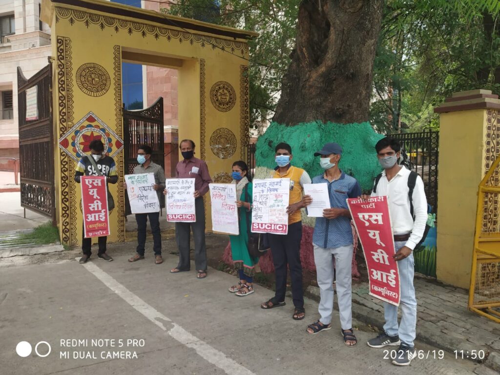 महंगाई के खिलाफ एस यू सी आई और सोशलिस्ट पार्टी ने किया विरोध प्रदर्शन, कलेक्टर को दिया ज्ञापन