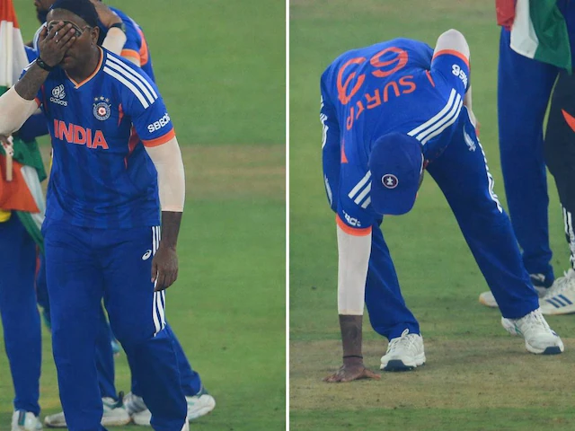 टी20 वर्ल्ड कप 2026 के फाइनल में न्यूजीलैंड को धूल चटाने के बाद भारतीय कप्तान सूर्यकुमार यादव अपनी भावनाओं पर काबू नहीं रख सके. जैसे ही मैच का आखिरी विकेट गिरा और भारत की ऐतिहासिक जीत पर मुहर लगी, ‘मिस्टर 360’ का एक ऐसा रूप देखने को मिला जिसने करोड़ों क्रिकेट प्रेमियों का दिल जीत लिया. बल्लेबाजी में भले ही किस्मत ने साथ नहीं दिया, लेकिन एक चैंपियन कप्तान के तौर पर मिली इस सफलता ने उन्हें पूरी तरह भावुक कर दिया. जीत के तुरंत बाद जश्न मनाने के बजाय सूर्या पहले पिच की ओर बढ़े. उन्होंने नरेंद्र मोदी स्टेडियम की पिच की मिट्टी को उठाया और उसे अपने माथे पर लगा दिया. इसके बाद वो हार्दिक पंड्या के साथ तिरंगे में लिपटे नजर आए. केवल सर्या ही नहीं अन्‍य क्रिकेटर्स भी भावुक नजर आए.