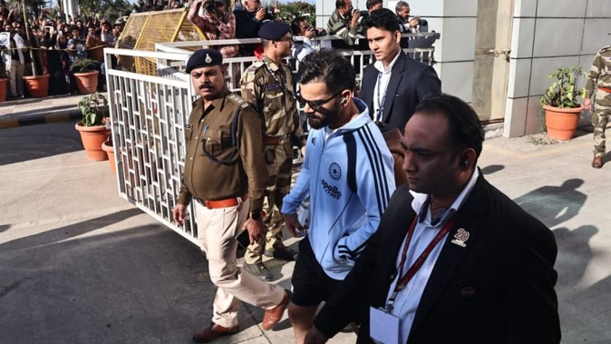 इंदौर में भारत और न्यूजीलैंड के बीच होने वाले रोमांचक मुकाबले की तैयारियां पूरी हो चुकी हैं। गुरुवार को भारतीय टीम के दिग्गज खिलाड़ियों के साथ न्यूजीलैंड की टीम भी इंदौर पहुंच गई है। एयरपोर्ट पर टीम इंडिया के कप्तान रोहित शर्मा, स्टार बल्लेबाज विराट कोहली, शुभमन गिल, केएल राहुल और तेज गेंदबाज मोहम्मद सिराज के पहुंचते ही प्रशंसकों का उत्साह चरम पर पहुंच गया। कोच गौतम गंभीर भी टीम के साथ मौजूद रहे। एयरपोर्ट से सभी खिलाड़ियों को कड़ी सुरक्षा के बीच सीधे होटल के लिए रवाना किया गया। सुरक्षा की दृष्टि से एयरपोर्ट और होटल के आसपास पुलिस बल तैनात किया गया है और प्रत्येक व्यक्ति की सघन जांच की जा रही है।