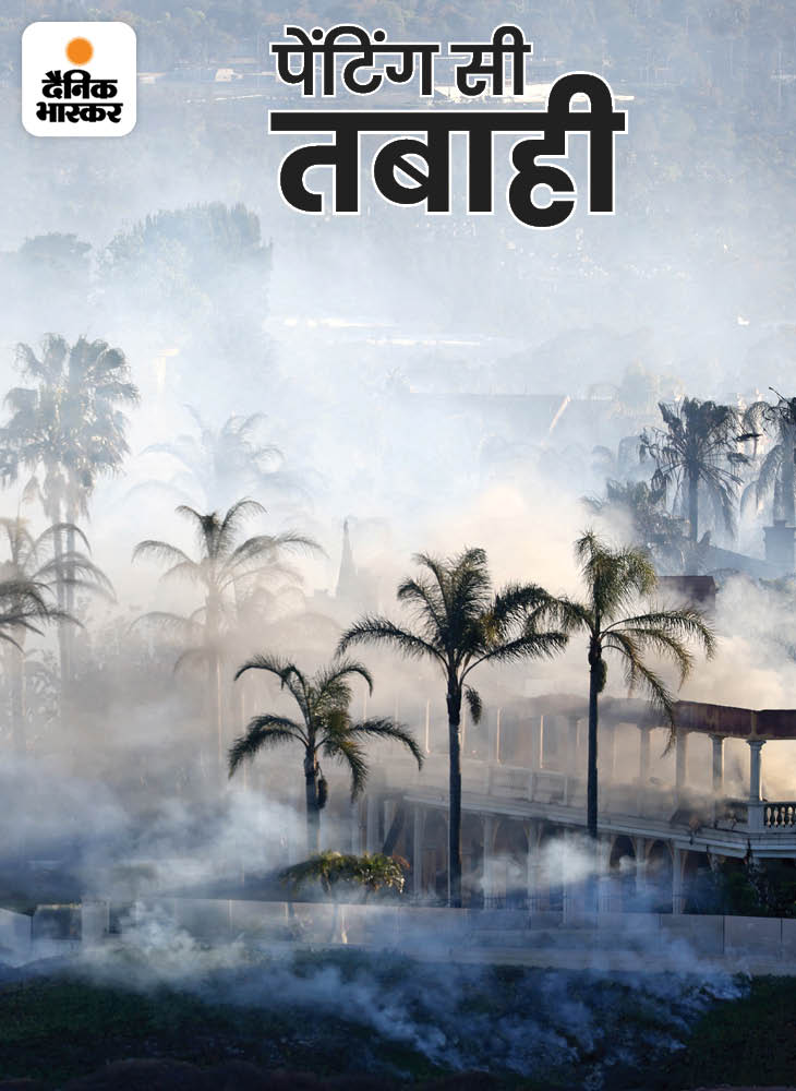 पेंटिंग की तरह दिख रही यह फोटो दरअसल तबाही का दस्तावेज है। अमेरिका के कैलिफोर्निया में लगी आग 200 एकड़ जमीन को जला चुकी है। इसकी शुरुआत निगुएल शहर से हुई। यह कैलिफोर्निया के सबसे समृद्ध इलाकों में से एक है। आग से 20 घर जल चुके हैं। इनमें फोटो में दिख रहा बंगला भी है। यहां रहने वालीं जेनिफर मैककॉय ने बताया कि उन्होंने पहली बार शाम करीब 4:15 बजे धुआं निकलते देखा। दो घंटे से भी कम वक्त में धुएं के बादल और बड़े हो गए। करीब 50 किमी की रफ्तार से चल रही हवा ने आग को और भड़का दिया।