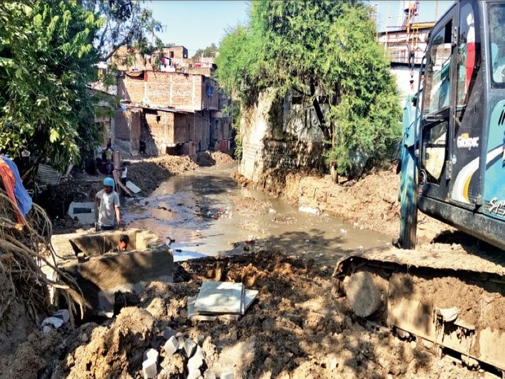 भमौरी नाला: दावा सफाई पूरी होने का है, लेकिन रसोमा लैब के पीछे सीवरेज बह रहा है। तर्क है कि बीआरटीएस के नीचे की लाइन से दिक्कत है।
