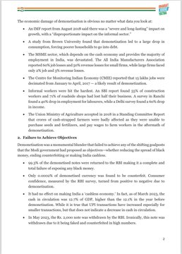 उनके मुताबिक, ‘नोटबंदी के कारण 2011 के बाद से बनी जीडीपी वृद्धि की गति पूरी तरह उलट गई। भारत की सकल घरेलू उत्पाद की वृद्धि दर 2011 में 5.2 प्रतिशत से बढ़कर 2016 में 8.3 प्रतिशत हो गई। फिर, विमुद्रीकरण नामक आपदा आई और विकास धीमा होना शुरू हो गया, जो कि कोविड-19 महामारी से ठीक पहले चार प्रतिशत तक पहुंच गया।’