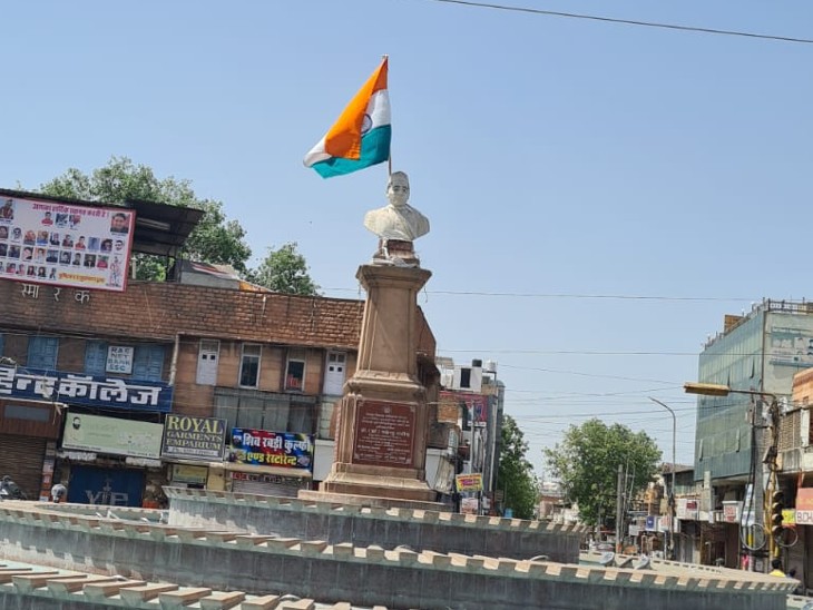 जालोरी गेट चौराहे पर इसी जगह झंडा लगाने को लेकर विवाद हुआ था। इसके बाद यहां तिरंगा लगा दिया गया। यह प्रतिमा स्वतंत्रता सेनानी बालमुकुंद व्यास की है, जो स्वतंत्रता सेनानी थे।