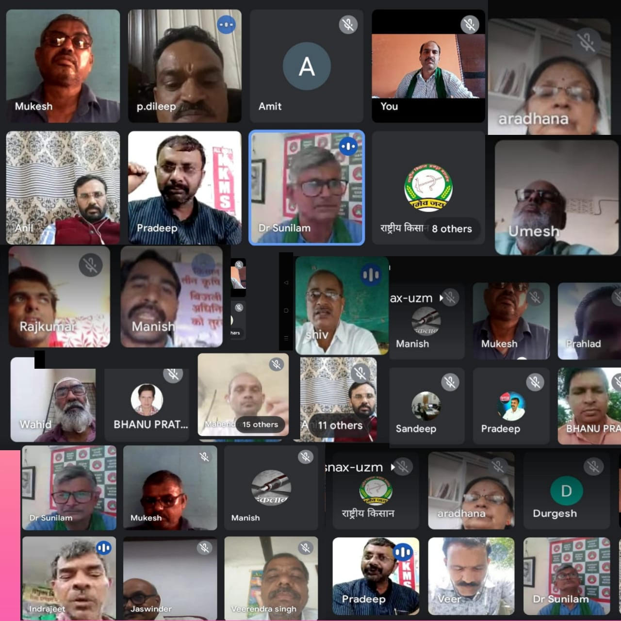 बैठक का संचालन किसान संघर्ष समिति के अध्यक्ष डॉ सुनीलम ने किया। बैठक में संयुक्त किसान मोर्चा की समन्वय समिति में शामिल सभी संगठन -अखिल भारतीय किसान सभा के जसविंदर सिंहबड़वानी से नर्मदा बचाओ आंदोलन के मुकेश भगोरिया, वाहिद मंसूरी, सिहोर से अखिल भारतीय किसान सभा (अजय भवन) भोपाल के प्रह्लाद दास वैरागी, सीधी से टोकों, रोकों, ठोकों क्रांतिकारी संगठन के संयोजक उमेश तिवारी, रीवा से शहीद राघवेंद्र सिंह किसान संघर्ष समिति के  इंद्रजीतसिंह शंखू, स.कि.मो. रीवा के संयोजक एड. शिवसिंह, एआईकेकेएमएस के प्रदीप आर.बी., मनीष श्रीवास्तव, भारतीय किसान यूनियन के अनिल यादव, महेंद्र सिंह तोमर (राजगढ़), वीरेंद्र सिंह राजपूत (रायसेन), वीर पाटीदार, सागर से भारतीय किसान श्रमिक जनशक्ति युनियन के संदीप ठाकुर, इंदौर से भारतीय किसान एवं मजदूर सेना के बबलू जाधव, , किसान संघर्ष समिति की उपाध्यक्ष एड. आराधना भार्गव, राजेश पटेल, खरगोन से श्रमिक जनता संघ के राजकुमार दुबे, संजय चौहान, दुर्गेश खवसे, संतोष गुप्ता,जबलपुर से जय किसान  आंदोलन  के अमित पाण्डेय, अग्रगामी किसान सभा सतना के सुनील सिंह , राष्ट्रीय किसान मजदूर महासंघ के राहुल राज, अनिल बिरला, वीरेंद्र सिंह राजपूत, क्रांतिकारी किसान मजदूर संगठन, भोपाल के बाबूसिंह राजपूत, किसान क्रांति- छतरपुर से दिलीप शर्मा, नीमच से एन ए पी एम के कृपाल सिंह मंडलोई , प्रहलादसिंह, भानूप्रताप मेवाड़ा, कुक्षी से रामदास पाटीदार आदि शामिल हुए।