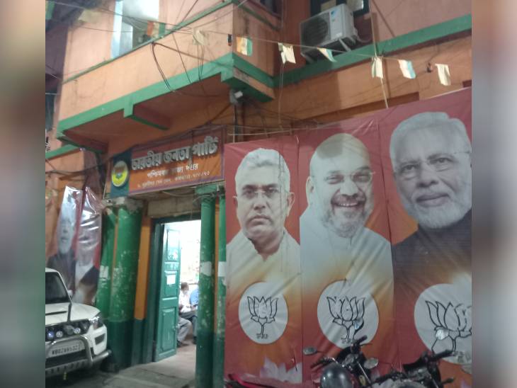 तस्वीर हेस्टिंग्स की है, जहां ममता बनर्जी और भाजपा के पोस्टर लगे हैं। इस क्षेत्र का नाम बंगाल के पहले गवर्नर-जनरल वारेन हेस्टिंग्स के नाम पर रखा गया है।
