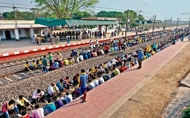 रेल की पटरी पर बैठकर प्रदर्शन करते कुड़मी जाति के लोग