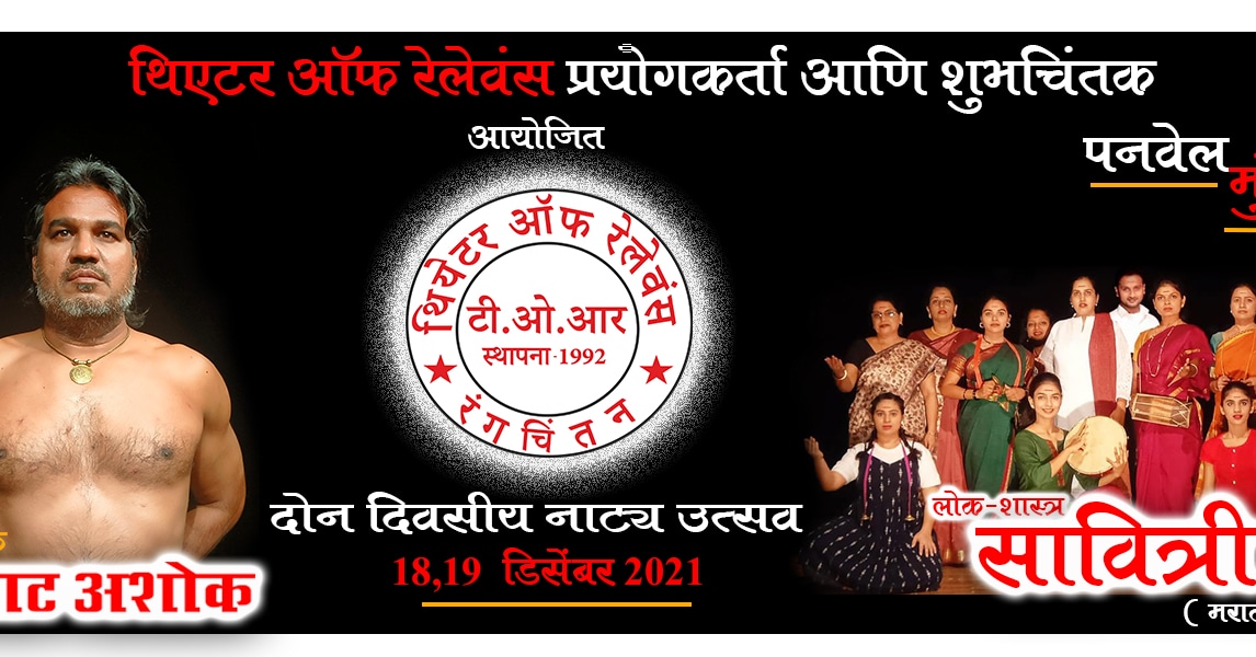 इंसानियत,समता, न्याय ,संविधान ,शांति और प्रजा कल्याण का संकल्प लिए थिएटर ऑफ़ रेलेवंस शुभचिंतक और प्रयोगकर्ता 18-19 दिसम्बर,2021 को वासुदेव बलवंत फड़के नाटयगृह,पनवेल में आपके लिए प्रस्तुत कर रहे हैं दो दिवसीय वैचारिक नाट्य उत्सव !