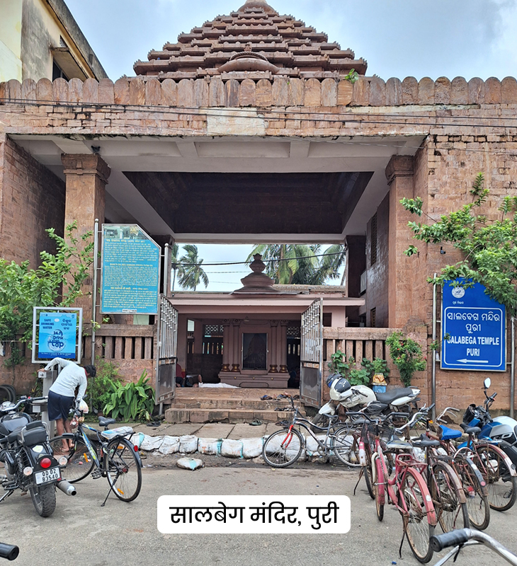 दो घंटे में एक किमी का सफर करने के बाद दोपहर 1:40 बजे अचानक भगवान जगन्नाथ का रथ एक मंदिर के सामने रुक गया। मंदिर में सामने नीले रंग का बोर्ड लगा है, जिस पर उड़िया और अंग्रेजी में लिखा है- सालबेग टेंपल, पुरी।