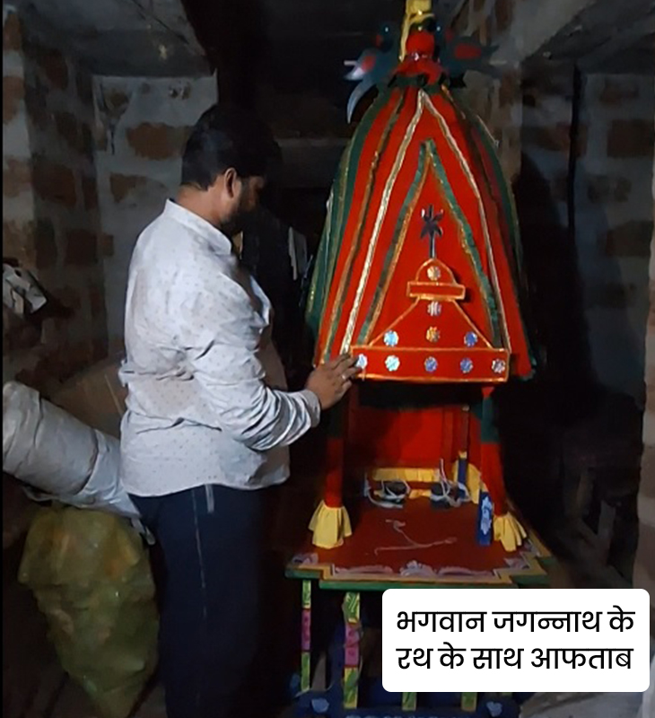 आफताब के घर में बना मंदिर, जिसमें भगवान जगन्नाथ, बलराम और सुभद्रा की मूर्तियां रखी है। आफताब के न रहने पर उनकी मां इनका ध्यान रखती हैं।