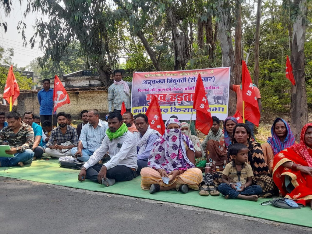 एसईसीएल में अनुकंपा नियुक्ति की मांग : किसान सभा के नेतृत्व में भूख हड़ताल पर बैठे पीड़ित परिवार