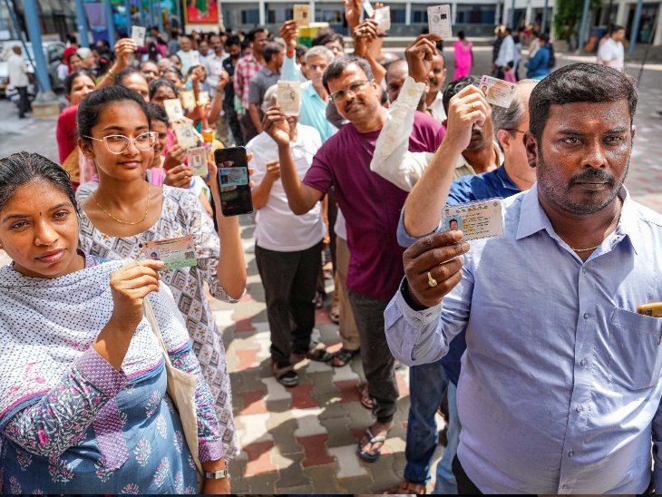 बेंगलुरु के एक पोलिंग बूथ पर वोट डालने के लिए लाइन में लगे लोग।