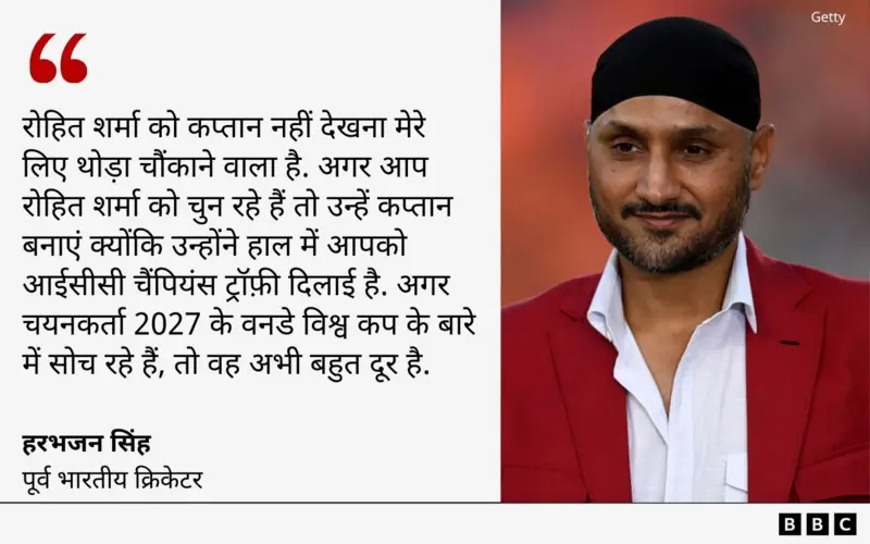 समाचार एजेंसी पीटीआई के अनुसार हरभजन ने ‘जियो हॉटस्टार’ से कहा, “शुभमन गिल को बधाई. निश्चित रूप से वह टेस्ट क्रिकेट में टीम का अच्छा नेतृत्व कर रहे हैं और अब उन्हें एक और ज़िम्मेदारी दी गई है, वनडे टीम की भी कप्तानी. रोहित की जगह शुभमन को कप्तान बनाया गया है. रोहित ऐसे खिलाड़ी हैं जिनका व्हाइट बॉल क्रिकेट में बहुत अच्छा रिकॉर्ड है.”