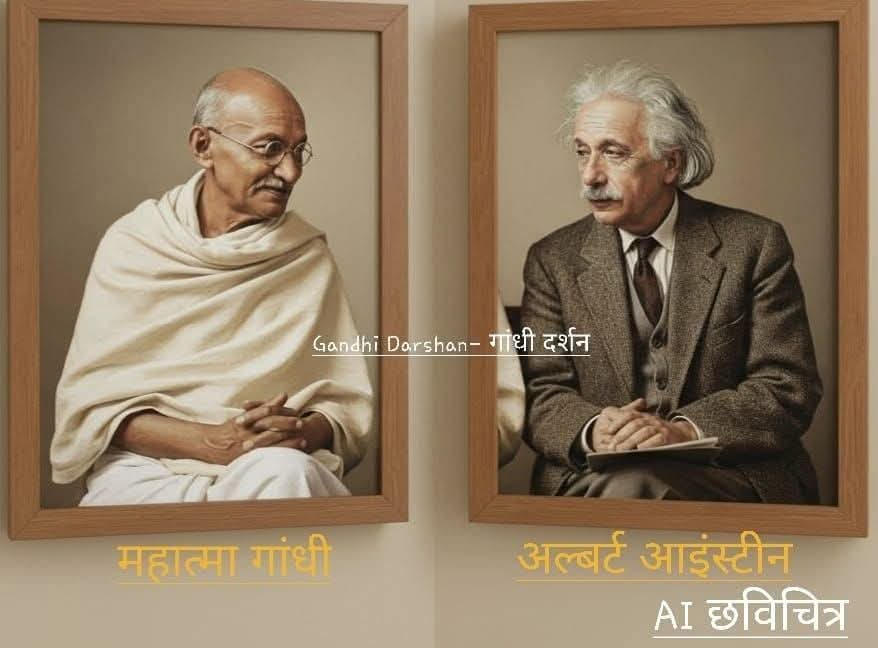 आइंस्टीन और गांधी—दो अलग दुनिया के दो महान नाम—कभी मिले नहीं, फिर भी एक दूसरे को गहराई से समझते थे। एक विज्ञान के सहारे सत्य खोजता था, दूसरा सत्य के सहारे समाज की दिशा तय करता था। जब आइंस्टीन ने अपने कमरे में गांधी की तस्वीर लगाई, तो यह केवल सम्मान नहीं था—यह विज्ञान का नैतिकता के सामने झुकना था। आइंस्टीन जानते थे कि ब्रह्मांड के नियम हमें प्रकृति समझाते हैं, लेकिन समाज के नियम गांधी जैसे महामानव बनाते हैं। आइंस्टीन ने E =mC2 समीकरण दिया। आइंस्टीन के लिए गांधी समाज विज्ञानी थे । अपने अंतिम समय में आइंस्टीन यूनिफाइड थ्योरी पर काम करते हुए उनका निधन हुआ। हो सकता है कि वे और जिंदा रहते तो एक सामाजिक समीकरण का प्रतिपादित करते,जिसमें G = TS2 होता। अर्थात गांधी (G) = सत्य ( T) × सेवा (S )2 होता। एक वैज्ञानिक का किसी संत में अपना प्रतिबिंब देख पाना इतिहास की सबसे सुंदर घटनाओं में से एक है।