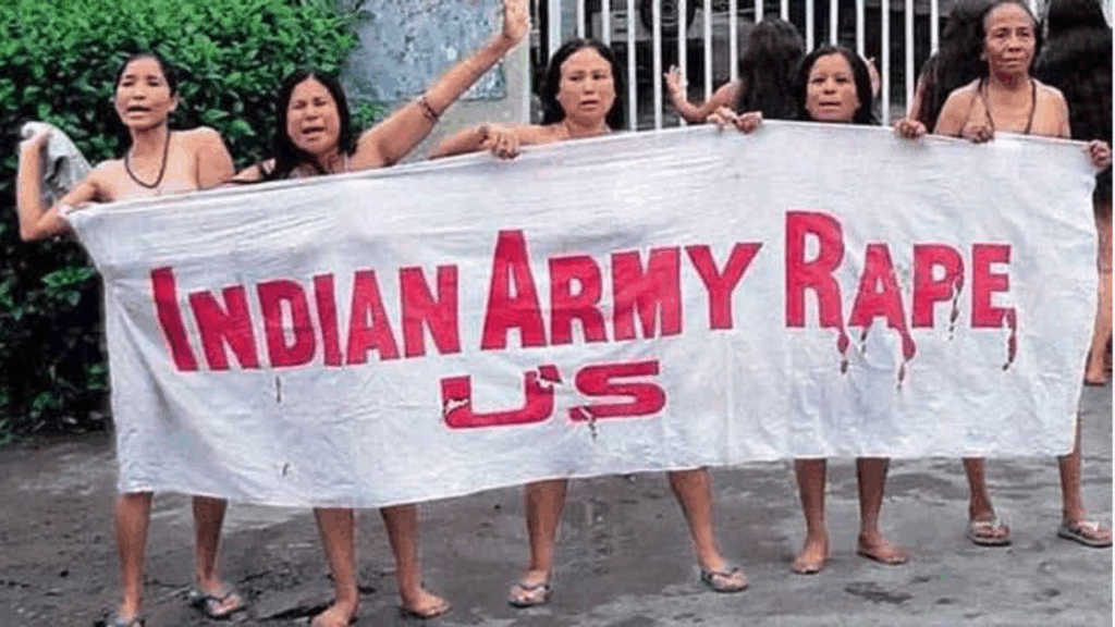 पर जब 2004 में उस इंफाल शहर में, जहां के नाटककार कन्हाईलाल ने सन् 2000 से इस कहानी का मंचन आरंभ किया था, 12 औरतों ने आसाम राइफ़ल्स के सैनिकों द्वारा थंगजाम मनोरमा के बलात्कार और हत्या के विरोध में सर से पांव तक नंगे होकर ‘इंडियन आर्मी, रेप अस’ का बैनर उठाये सेना के कैंप के सामने प्रदर्शन किया, तो मानो एक कहानी शब्दों से निकल कर हक़ीक़त में साकार हो गयी और प्रतिरोध का सबसे अनोखा नमूना विश्व-इतिहास के पन्नों पर दर्ज हो गया.