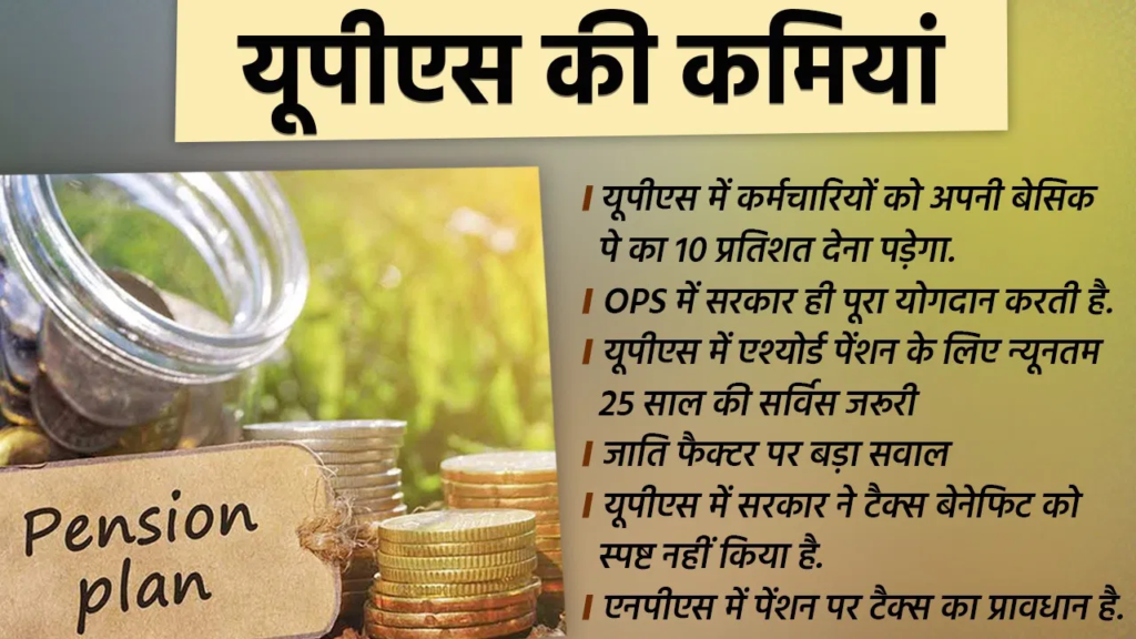 देश के अलग-अलग कर्मचारी यूनियन्स इसका विरोध कर रहा है. भारतीय मजदूर संघ ने सरकार के इस स्कीम का स्वागत तो किया है लेकिन इसकी कुछ कमियां भी बताई है. भारतीय मजदूर संघ के महामंत्री रविन्द्र हिमते के मुताबिक पुरानी पेंशन योजना की जो विशेषताएं रही वह एनपीएस में नहीं हैं. उनमें से अधिकांश को नए यूपीएस में शामिल को किया गया है लेकिन ओल्ड पेंशन स्कीम की तुलाना में इसमें अभी भी कुछ खामियां है. यूपीएस एक अंशदायी पेंशन योजना है जहां ओपीएस में कर्मचारी को कुछ भी योगदान नहीं करना होता है, ओपीएस में पेंशन के कम्यूटेशन की सुविधा उपलब्ध है जो एनपीएस/यूपीएस में नहीं है.