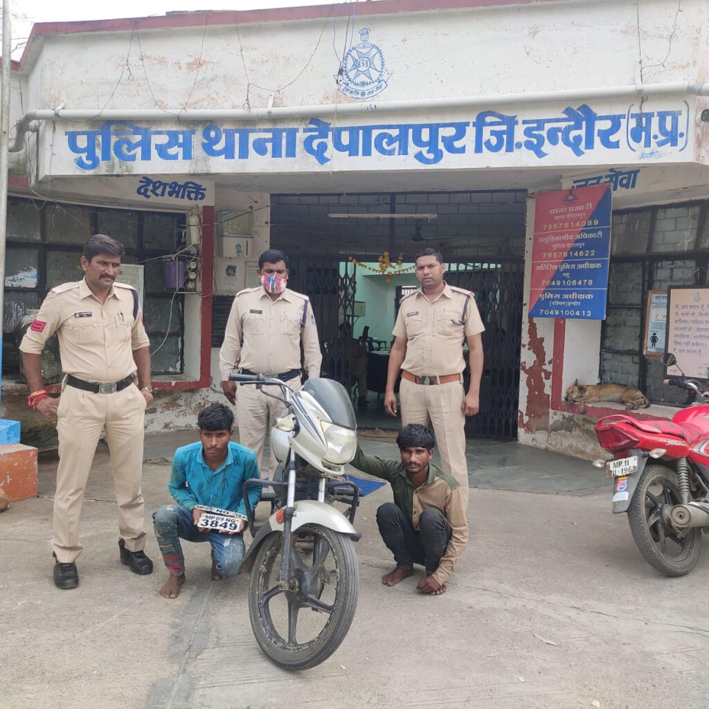 इंदौर – – जिले में चोरी/ नकबजनी, वाहन चोरी आदि संपत्ति संबधी अपराधों पर अंकुश लगाने हेतु इन अपराधों में संलिप्त आरोपीयो की पतारसी कर प्रभावी कार्यवाही करने के निर्देश पुलिस उपमहानिरीक्षक शहर इन्दौर श्री मनीष कपूरिया द्वारा दिये गए है । उक्त निर्देशो के तारतम्य में पुलिस अधीक्षक पश्चिम इन्दौर श्री महेशचंद जैन एवं अतिरिक्त पुलिस अधीक्षक महू श्री पुनीत गेहलोत के मार्गदर्शन में एसडीओपी देपालपुर श्रीमती नीलम कनोज द्वारा दिए गए दिशा निर्देश अनुसार कार्यवाही करते हुए पुलिस थाना देपालपुर द्वारा वाहन चोर को चोरी की मोटरसाइकिल सहित पकड़ा गया है।