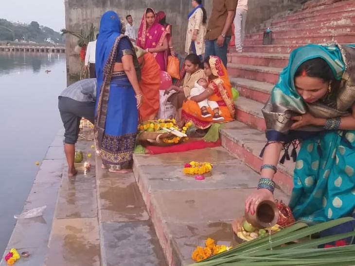 36 घंटो से व्रत है महिलाएं, तस्वीरों में देखिए छठी मैया की पूजा