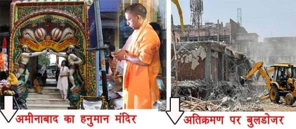 प्राचीन महावीर देवालय परिसर (अमीनाबाद, लखनऊ) में (कल, 5 मई 2022) अपना बुलडोजर चलवाकर काशाय परिधानधारी योगी आदित्यनाथ जी ने निष्ठापूर्वक अपने सच्चे राजधर्म का निर्वहन किया। समदृष्टि दर्शायी। पक्षपात का आरोप लगाते थे मस्जिदवाले, उसे मिथ्या सिद्ध कर दिया। सनातनी आस्थास्थल की भूमि को माफियाओं के चंगुल से रिहा करा कर योगी जी ने ईश्वरीय नियम का क्रियान्वन कराया। मुझ जैसा सत्तर सालों से इस मंदिर का नियमित आराधक अत्यंत गौरान्वित हुआ। गर्वित भी।