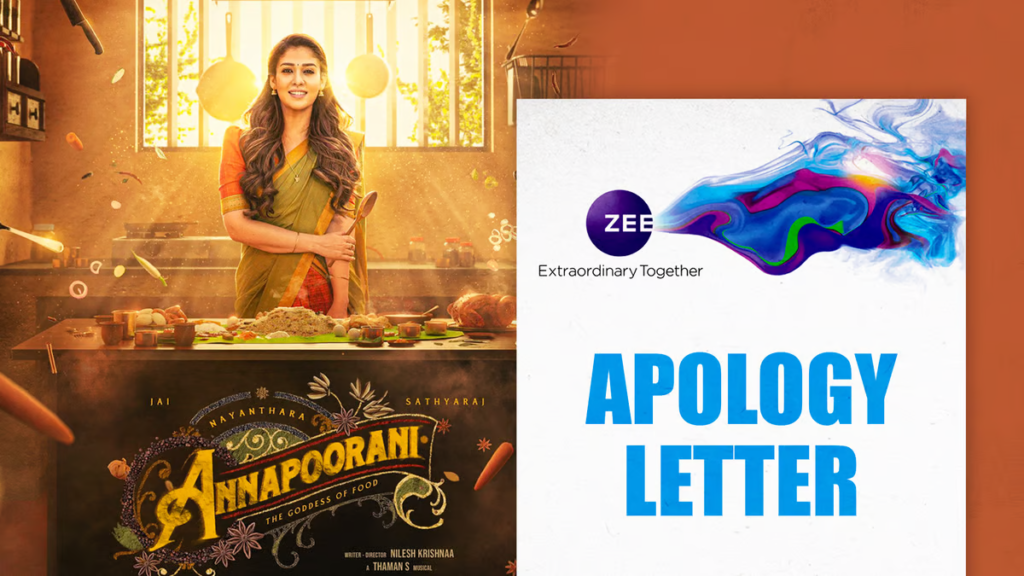 साउथ सिनेमा की फिल्म ‘अन्नपूर्णी’ के विवादों में आने के बाद अब इसके निर्माताओं में से एक ज़ी स्टूडियोज़ ने माफीनामा जारी किया है. ये माफीनामा विश्व हिंदू परिषद (वीएचपी) की आपत्ति के बाद जारी किया गया है. वीएचपी का आरोप था कि इस फिल्म में हिंदू धर्म की भावनाओं को आहत किया गया.